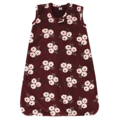 Hudson Baby Infant Girl Long Sleeve Plush Faux Fur Sleeping Bag, Wearable Blanket, Burgundy Floral