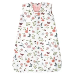 Hudson Baby Infant Girl Plush Faux Fur Sleeping Bag, Wearable Blanket, Hummingbird Garden