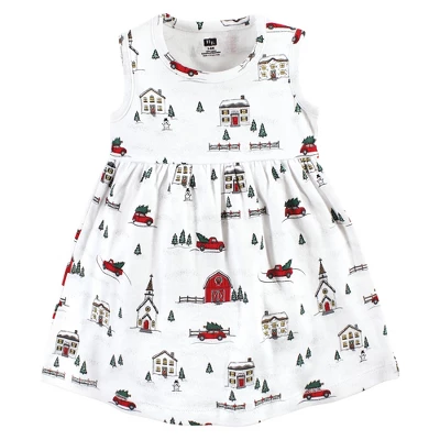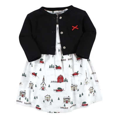 Hudson Baby Baby Girls Cotton Dress And Cardigan Set, Christmas Scene