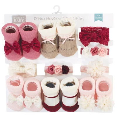 Hudson Baby Girl Headband And Socks Giftset, Boho, One Size