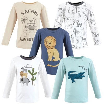 Hudson Baby t-shirts are great everyday tops for your little ones. Featuring fun prints and patterns, our t-shirts are made with comfortable, soft cotton poly fabric that feels wonderful on children’s skin. Our sets include five t-shirts so you can mix and match with your child’s wardrobe for fun everyday outfits.