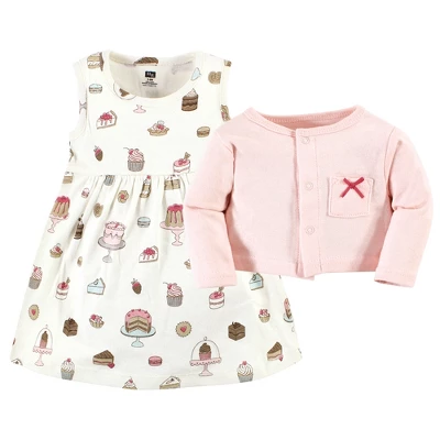 Hudson Baby Infant And Toddler Girl Cotton Dress And Cardigan Set, Sweet Bakery