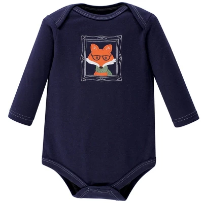 Hudson Baby long-sleeve bodysuits are an essential part of baby’s wardrobe. Our bodysuits feature adorable prints, embroideries, stripes and solids and provide a comfortable base layer that’s great for pairing with pants, shorts, or even wearing under outfits. Our bodysuits are comfortable and cozy for all-day, everyday wear for your little one. Hudson Baby Infant Boy Cotton Long-Sleeve Bodysuits 5pk, Mr Fox is a great baby essentials set for your little one.