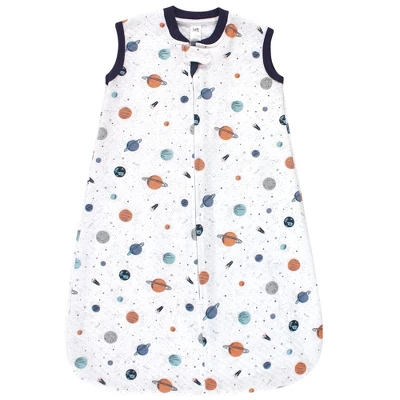 Hudson Baby premium quilted cotton sleeping bag and wearable blanket is the perfect safe sleep blanket for your little one to have a warm, cozy, comfortable and safe night of sleep. Our quilted fabric is made of soft, delightful cotton with polyester filling. Our wearable blanket is designed sleeveless because it is made with a light cotton material, providing the perfect balance of keeping baby warm while still keeping baby safe from overheating. Our zipper closure makes for easy on and off dressing, which is especially convenient for night time diaper changes. Our sleep sack will replace loose blankets in the crib and will keep your little one cozy, warm and secure throughout the night. Hudson Baby Infant Boy Premium Quilted Sleeveless Sleeping Bag and Wearable Blanket, Space is the perfect addition to your little one’s nursery. Our sleep sacks, wearable blankets and sleeping bags are always intended to be worn over children’s sleepwear.