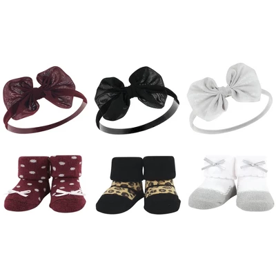 Hudson Baby Infant Girl 12Pc Headband And Socks Giftset, Burgundy Leopard Blush Taupe, One Size