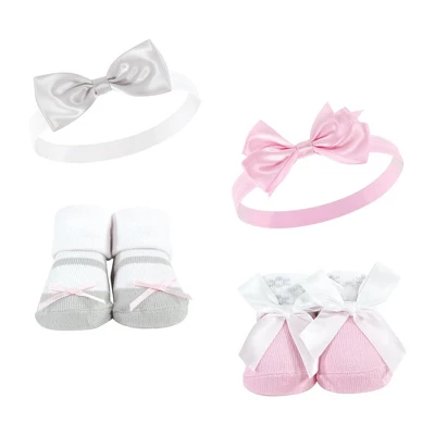 Hudson Baby Infant Girl 12Pc Headband And Socks Set, Pink Gray Red Sequin, 0-9 Months
