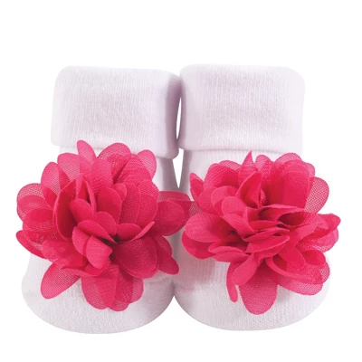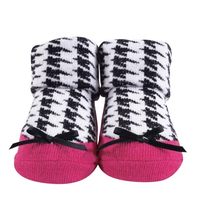 Hudson Baby Infant Girl Headband And Socks Giftset 6pc, Dark Pink Black, One Size