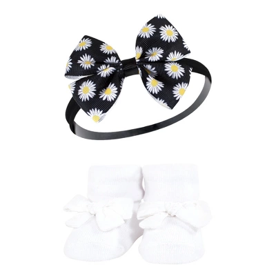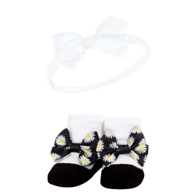 Hudson Baby Infant Girl Headband And Socks Giftset, Black Daisy, One Size