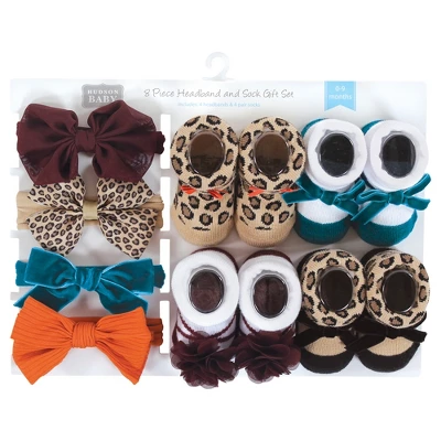 Hudson Baby socks and headband giftset is the perfect accessory set for your little one. Our giftset includes coordinating headbands and socks so your baby is looking fashionable from head to toe. Our headbands and socks are great for dressing up or everyday wear. Our giftset is packaged very nicely and makes a terrific baby shower gift.