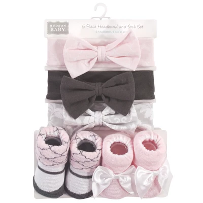 Hudson Baby socks and headband set is the perfect accessory set for your little one. Our set includes coordinating headbands and socks so your baby is looking fashionable from head to toe. Our headbands and socks are great for dressing up or everyday wear. Our set makes a terrific baby shower gift. Hudson Baby Infant Girl Headband and Socks Set 5pk, Berry Floral is a great baby essentials set for your little one.