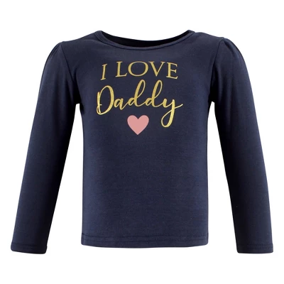 Hudson Baby Infant Girl Long Sleeve T-Shirts, Girl Daddy Pink Navy