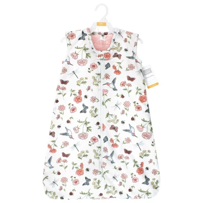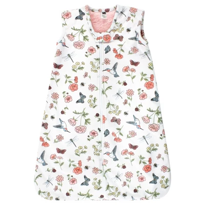 Hudson Baby Infant Girl Plush Faux Fur Sleeping Bag, Wearable Blanket, Hummingbird Garden