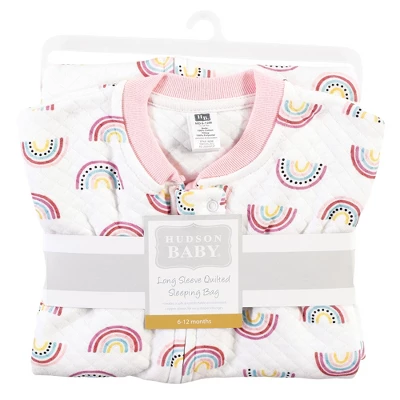 Hudson Baby premium quilted cotton sleeping bag and wearable blanket is the perfect safe sleep blanket for your little one to have a warm, cozy, comfortable and safe night of sleep. Our quilted fabric is made of soft, delightful cotton with polyester filling. Our wearable blanket is designed long-sleeve because it is made with a light cotton material, providing the perfect balance of keeping baby warm while still keeping baby safe from overheating. Our zipper closure makes for easy on and off dressing, which is especially convenient for night time diaper changes. Our sleep sack will replace loose blankets in the crib and will keep your little one cozy, warm and secure throughout the night. Our sleep sacks, wearable blankets and sleeping bags are always intended to be worn over children’s sleepwear.