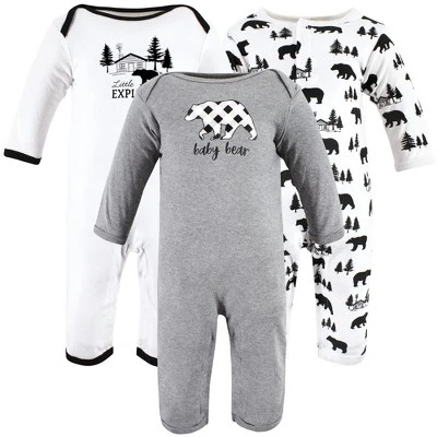 Hudson Baby Unisex Baby Cotton Coveralls, Baby Bear Gray Black