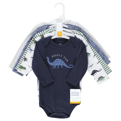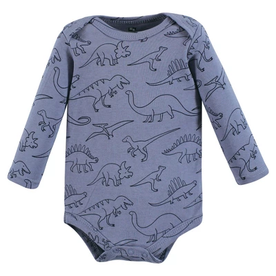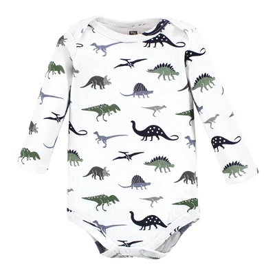 Hudson Baby Unisex Baby Cotton Long-Sleeve Bodysuits, Blue Green Dino
