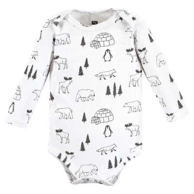 Hudson Baby long-sleeve bodysuits are an essential part of baby’s wardrobe. Our bodysuits feature adorable prints, embroideries, stripes and solids and provide a comfortable base layer that’s great for pairing with pants, shorts, or even wearing under outfits. Our bodysuits are comfortable and cozy for all-day, everyday wear for your little one.