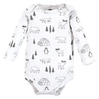 Hudson Baby long-sleeve bodysuits are an essential part of baby’s wardrobe. Our bodysuits feature adorable prints, embroideries, stripes and solids and provide a comfortable base layer that’s great for pairing with pants, shorts, or even wearing under outfits. Our bodysuits are comfortable and cozy for all-day, everyday wear for your little one.