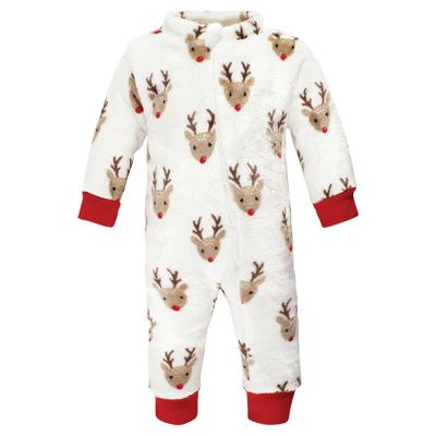 Hudson Baby Unisex Baby Plush Jumpsuits, Red Rudolph
