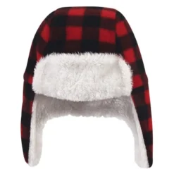 Hudson Baby Infant And Toddler Fleece Trapper Hat And Mitten 2pc Set, Black Red Plaid