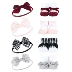 Hudson Baby Infant Girl 16Pc Headband And Socks Set, Classic Neutrals Houndstooth Burgundy, One Size