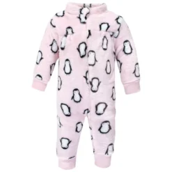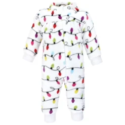 Hudson Baby Infant Girl Plush Jumpsuits, Pink Christmas Lights